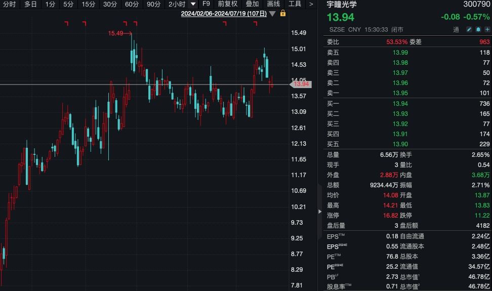 宇瞳光学预计2024年半年度归母净利润8100万~9100万元,同比增长200.74%~237.87%。