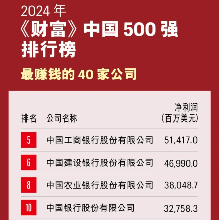 2024年《财富》中国500强排行榜揭晓:28家银行机构上榜 国有四大行位列前十
