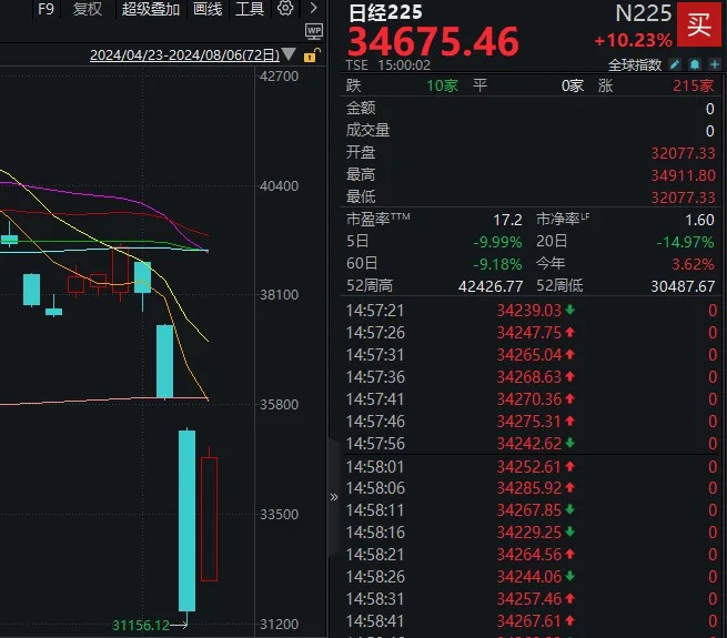 昨天创纪录下跌12.4%的日经225指数,今天盘中最多上涨约11%,收盘涨幅为10.23%,那么当下点位距其反包周一阴线,还差几个点?
