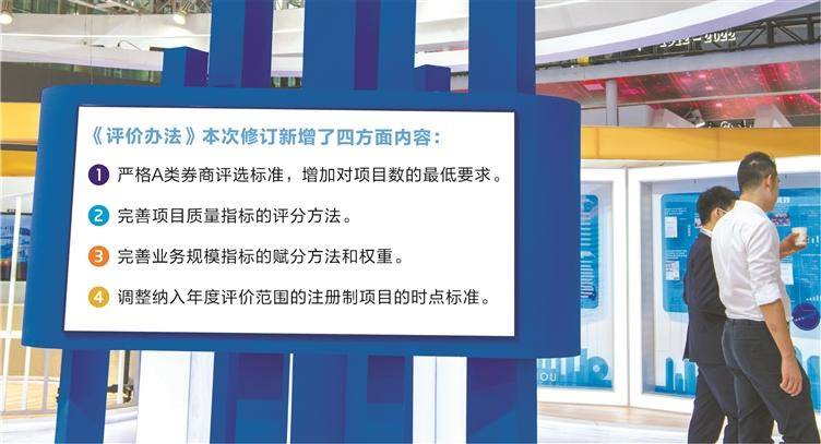 首先,严格了A类券商评选标准,增加对项目数的最低要求。被评为A类的券商,除综合得分应位于前20%外,还应具有较强的市场影响力。因此,《评价办法》第五条新修订为“原则上得分排名前20%且项目数在行业平均数以上的证券公司为A类”。