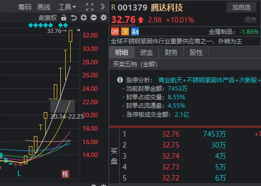 上午,腾达科技再度涨停,走出10连板。截至收盘仍稳稳封住,成交额8.3亿元,换手率超53%。
