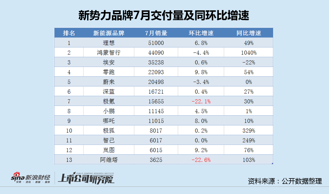 今年7月,阿维塔仅实现销量3625辆,低基数下同比增长103%,环比大跌22.6%,在已处于新势力尾部的情况下,进一步掉队。尽管公司将今年销量目标从10万辆下调至9万辆,但7个月过去了,完成率也仅36%。