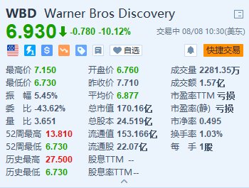 美股异动|华纳兄弟探索跌超10% Q2录得91亿美元的非现金商誉减值