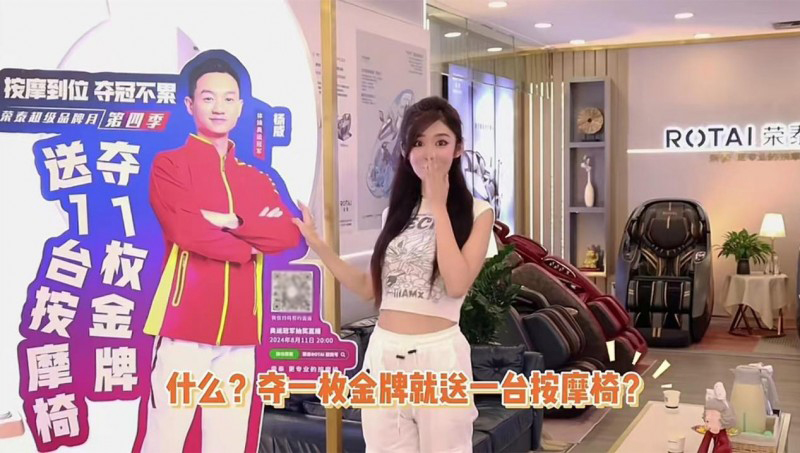 巴黎赛事伊始,荣泰特别向中国健儿致敬,通过多样化的世界冠军短视频及夺金时刻海报矩阵,以丰富的内容形式在线上扩大「夺一枚金牌,送一台按摩椅」活动影响力。同时也为线下门店提供了极具吸引力的传播物料,这一创新策略不仅为荣泰品牌线下门店的运营开辟了新思路,更彰显了品牌紧跟时代脉搏,以创新营销赋能品牌发展的坚定决心与强大实力。