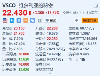 美股异动|维多利亚的秘密大涨超17.6% 领导层改组+Q2EPS初步数据超预期