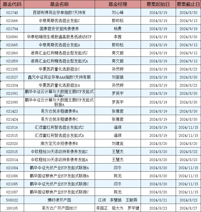 本周新发基金15只:易方达博时鹏华等13家公司PK 两只REIT产品或可关注