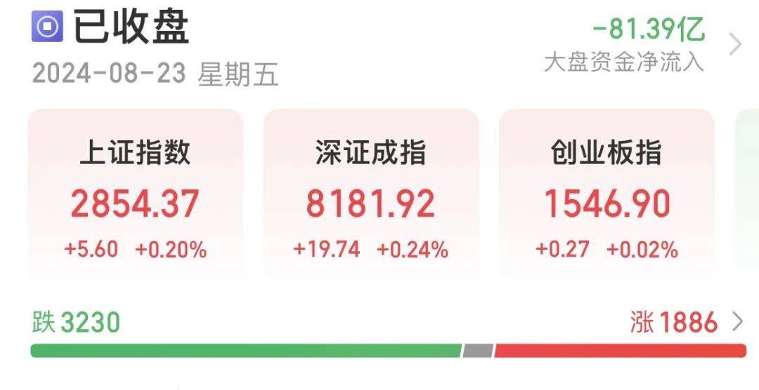 8月23日,A股三大指数震荡反弹,截至收盘,沪指涨0.20%,深成指涨0.24%,创业板指涨0.02%,北证50指数跌0.70%,沪深京三市成交额5130亿元。