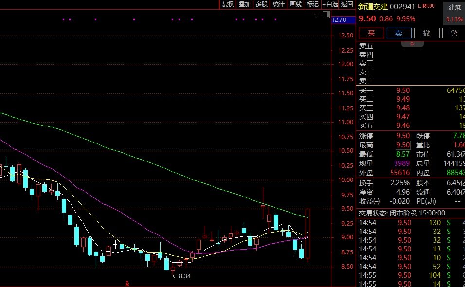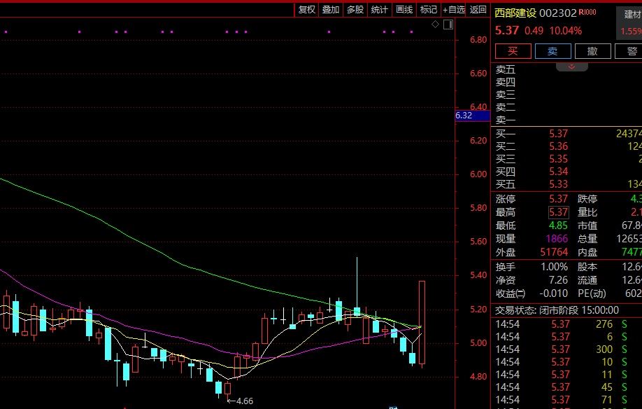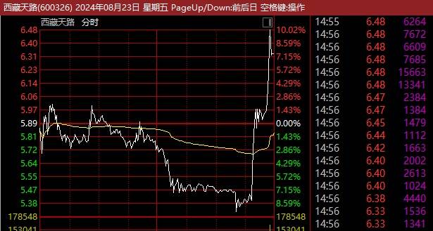 尾盘基建板块人气股西藏天路(600326)触及涨停,上演准地天板,换手率超24%,报收6.33元/股,最新市值81.58亿元。早盘该股一度逼近跌停。