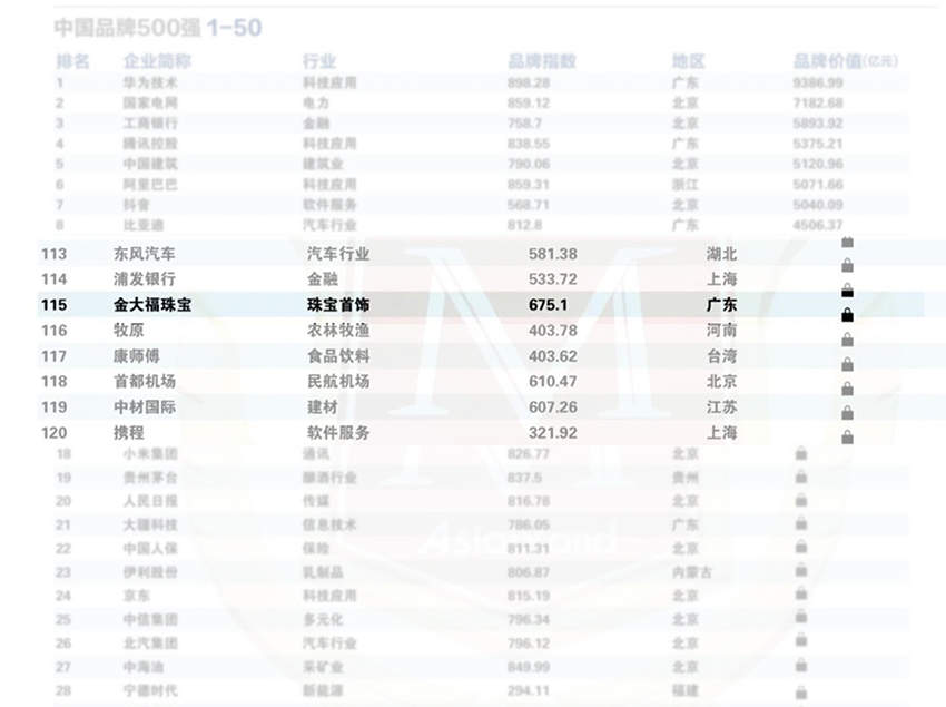 品牌价值提升!金大福珠宝荣登2024中国品牌500强