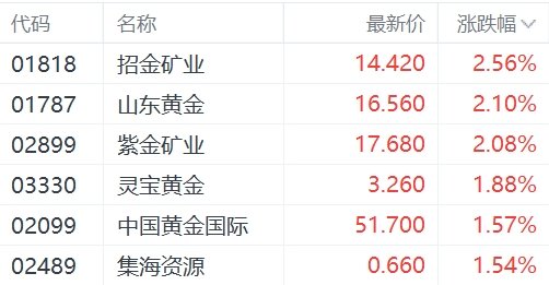 港股异动丨现货黄金3连升,黄金股逆势上涨