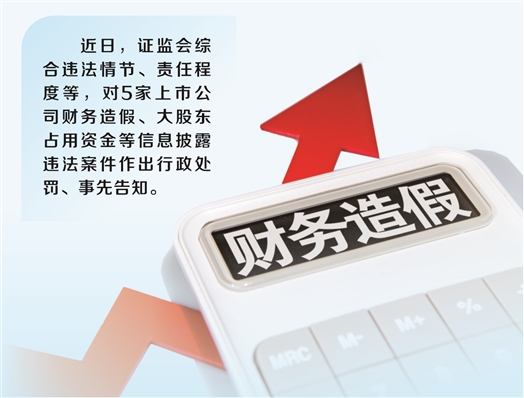 资本市场从严监管持续深入,处罚力度全面升级。7月5日证监会消息,近日证监会综合违法情节、责任程度等,对5家上市公司财务造假、大股东占用资金等信息披露违法案件作出行政处罚、事先告知。