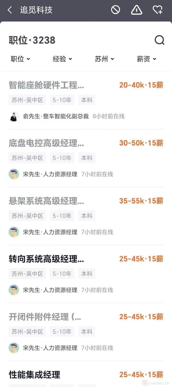 新浪科技讯 7月8日下午消息,近日,追觅科技在招聘平台开始招聘汽车相关专家,涉及底盘电控、悬架系统、转向系统等领域工程师,月薪最高超过5万元。