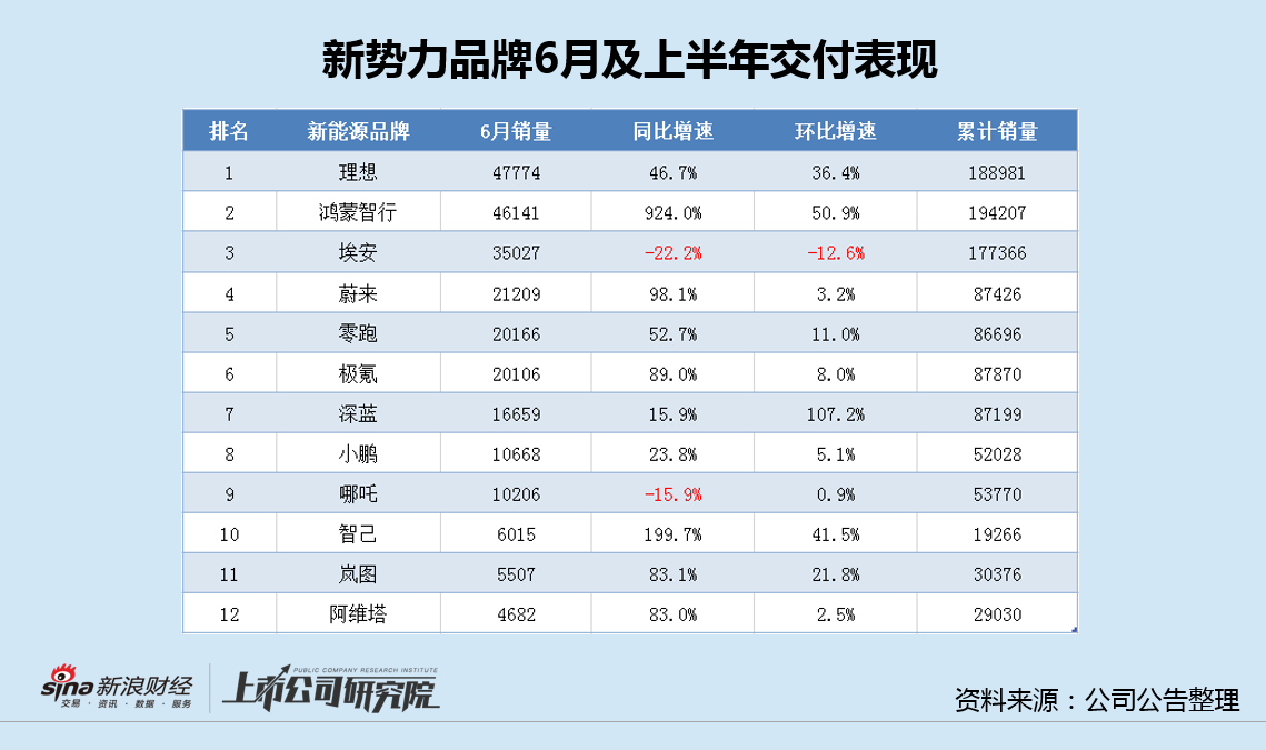 随着6月销售数据的披露,各家新势力上半年的成绩单也陆续揭晓。
