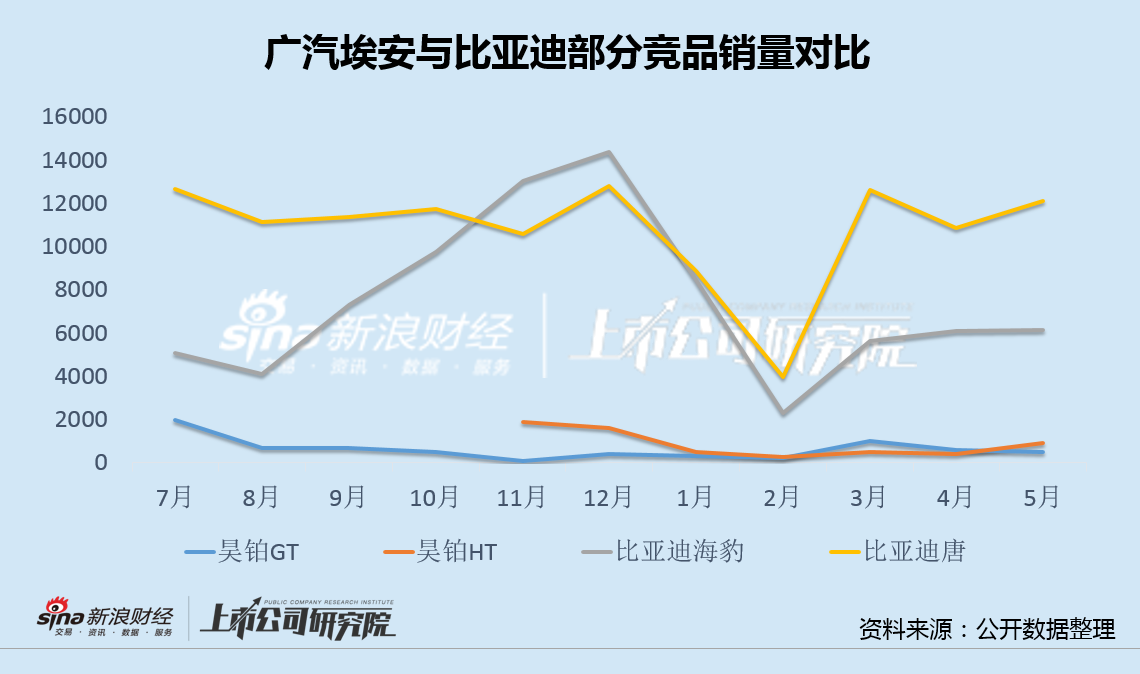 由于比亚迪秦等性价比更高的产品挤压,埃安主力车型Y和S系列销量严重受损,今年以来连续降价也无法扭转颓势,被竞品大幅反超。